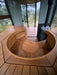 Surrounding the sauna is tempered double-glazed glass with a mirror effect, offering privacy while maintaining connection to the outside world. This glass allows sauna goers to see outside while preventing outsiders from seeing in. The glass is very well insulated, resulting in minimal heat loss. Heat loss through the glass is so insignificant, that this sauna works very well even in the coldest parts of Canada & USA.