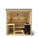 Designed for flexibility, the C1 accommodates both freestanding and alcove installations, requiring only minimal wall and ceiling clearance. The kit includes precisely fabricated front frame panels, side walls, rear walls, ceiling elements, and a bottom frame that align cleanly during assembly, making the build process approachable for DIY users. Inside, the obeche wood benches and backrest offer a smooth, low-heat surface ideal for sauna use, and the overall construction maintains a sturdy, well-fitted feel that supports years of reliable enjoyment.