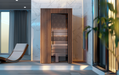 • Clear Tempered Glass Door – A premium sauna door featuring clear tempered glass, sleek black hardware, and a luxury handle for both style and safety.