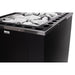 The sturdy outer casing of the sauna stove is painted in black for a bold appearance. This stove is robust and designed for longevity, ensuring that it will endure for many years while creating an authentic ambiance in the sauna.