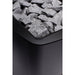 The unique fire chamber of the sauna stove results in more efficient and cleaner combustion, making it environmentally friendly. The casing of the sauna stove is painted in black and made of corrosion-resistant steel for durability, paired with adjustable feet for effortless and proper installation. The chimney connection for this sauna stove can be implemented from the top or back, but a separate connection pipe will be needed for the top.